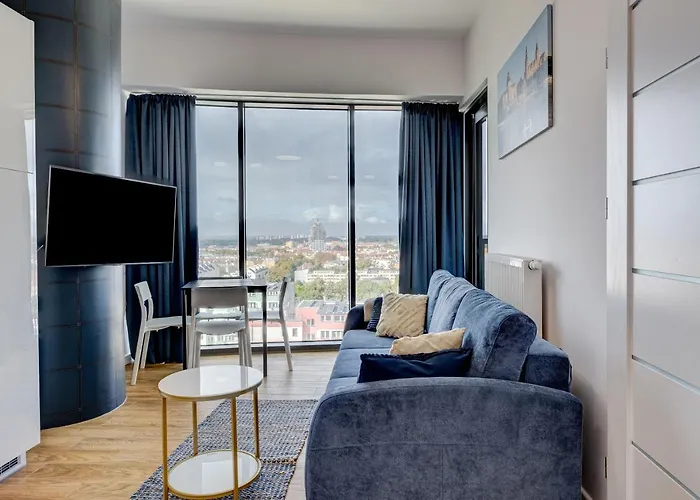 El Apartamento Aleda Tower, 14 Floor, Balkon Szczecin está situado a 500 m de Teatr Lalek "Pleciuga", en el barrio Srodmiescie de Szczecin, y acoge a sus huéspedes con una piscina de inmersión, un jacuzzi y una sauna. Además, con la piscina de inmersión tendrás una estancia de lo más relajante.